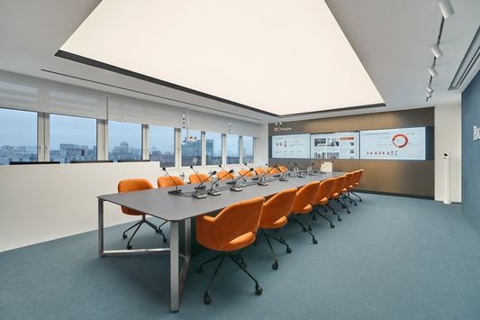 Три оборудованных конференц-зала оснащены площадками для работы операторов телекамер и имеют мощности для подключения специального освещения.