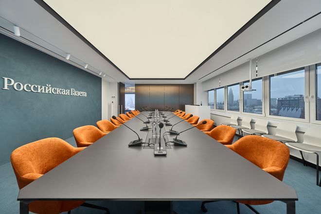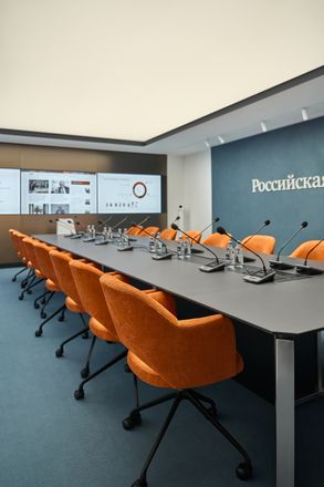 Синий зал используется для проведения круглых столов, экспертных советов, «горячих» линий и телемостов, деловых завтраков, проектных презентаций и отчетных собраний.