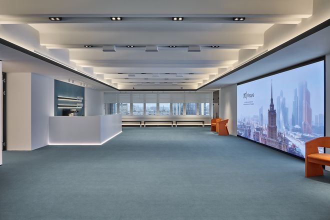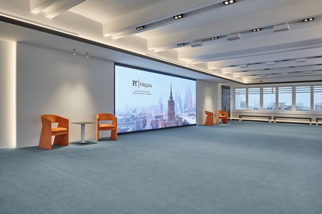 Фойе медиацентра предназначается для кофе-брейков, фуршетов, торжественных банкетов после пресс-мероприятий. В фойе свободно размещается до 80 человек.